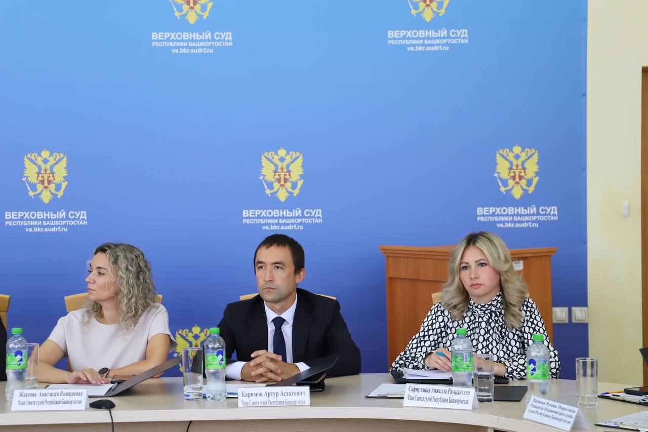 25 июля в Верховном Суде Республики Башкортостан состоялось очередное заседание Совета судей республики. В заседании приняли участие члены Совета судей и приглашенные лица: заместитель Председателя Верховного Суда Республики Башкортостан Азат Гизатуллин, начальник Управления Судебного департамента в Республике Башкортостан Роберт Усманов, заместитель начальника Управления Судебного департамента в Республике Башкортостан Рустам Гильмуллин, заместитель председателя Государственного комитета по делам юстиции Заниль Галямов, начальник информационного отдела Государственного комитета по делам юстиции Республики Башкортостан Ильдус Ибрагимов, директор Государственного казенного учреждения Государственного юридического бюро Республики Башкортостан Павел Хотемлянский. В рамках предложенной повестки дня на заседании рассмотрены вопросы избрания нового состава Совета ветеранов судей республики, о внедрении ПИ МАГИС на судебных участках мировых судей республики, о состоянии работы судов и мировых судей республики по направлению электронных исполнительных документов. Также особое внимание уделено вопросу обеспечения районных, городских, межрайонных судов и судебных участков мировых судей республики материально-техническими средствами, транспортом, текущему состоянию зданий судов и капитальному ремонту. Обсуждены вопросы взаимодействия судов республики с общественностью и средствами массовой информации, также уделено внимание вопросу о направлении сведений о наличии (отсутствии) частных постановлений (определений, представлений), информационных писем, направленных в адрес судей при прохождении аттестации. В ходе заседания объявлен ежегодный конкурс «Лучший по профессии» в 2025 году, назначены ответственные лица за проведение конкурса. Согласован ряд проектов приказов Управления Судебного Департамента в Республике Башкортостан и кандидатур для включения в комиссии Управления Судебного департамента в Республике Башкортостан. Кроме того, утверждены планы работы комиссий Совета судей Республики Башкортостан на второе полугодие 2025 г. Помимо этого, были рассмотрены вопросы о награждении судей и государственных гражданских служащих судов.