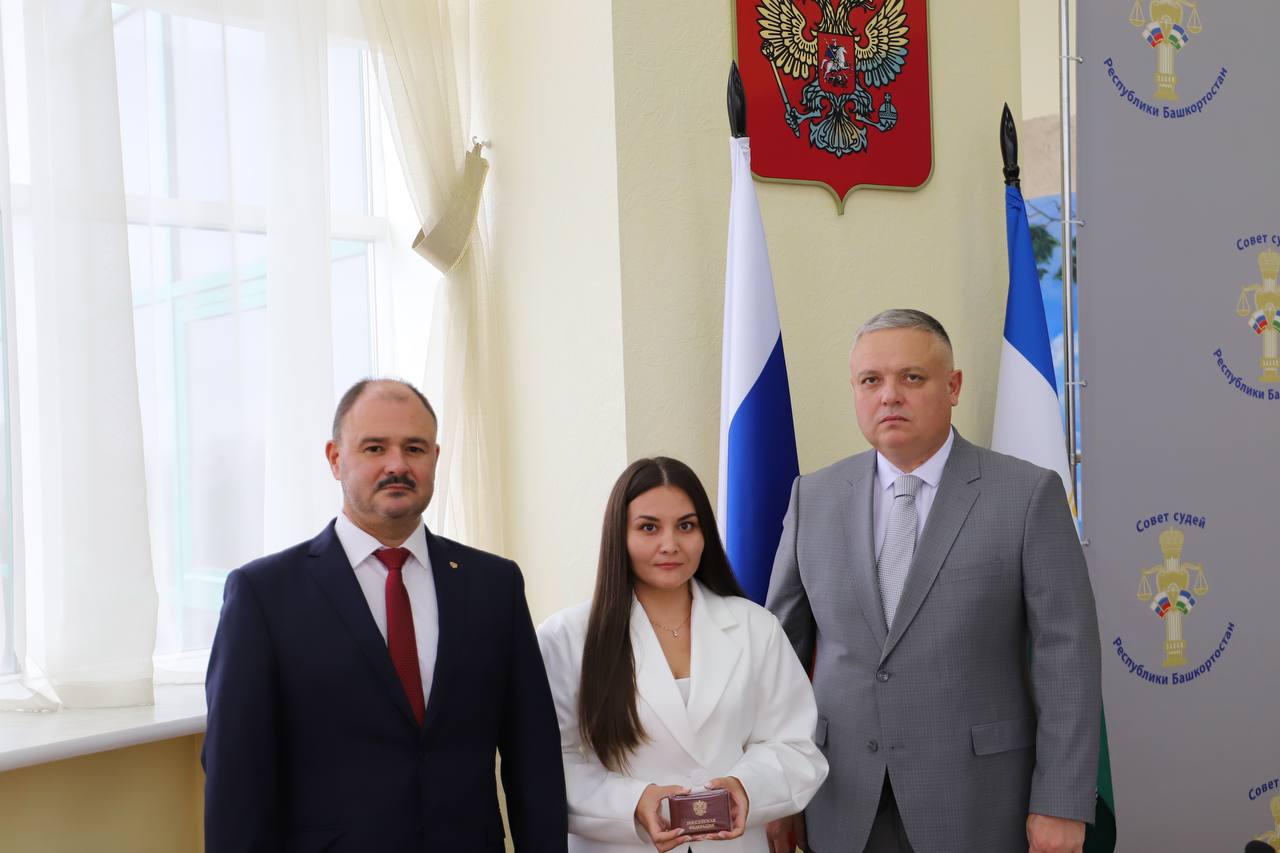 31 июля в Верховном Суде Республики Башкортостан состоялась торжественная церемония вручения удостоверений федеральным судьям, назначенным Указом Президента Российской Федерации от 9 июля 2025 № 463. В торжественной обстановке главный федеральный инспектор по Республике Башкортостан Алексей Касьянов вручил служебные удостоверения председателю Кугарчинского межрайонного суда Республики Башкортостан Гафуру Абдрахимову, заместителю председателя Ишимбайского городского суда Республики Башкортостан Альгису Муфтиеву, судье Баймакского районного суда Республики Башкортостан Резеде Хасаевой, судье Балтачевского межрайонного суда Республики Башкортостан Радмиру Фаткуллину, судье Караидельского межрайонного суда Республики Башкортостан Ильфире Хабибуллиной и судье Октябрьского районного суда г. Уфы Галине Щербаковой. Председатель Верховного Суда Республики Башкортостан Раиль Шайдуллин и главный федеральный инспектор по Республике Башкортостан Алексей Касьянов поздравили судей с назначением на ответственные должности и подчеркнули значимость возложенной на них ответственности в обеспечении законности и правопорядка.