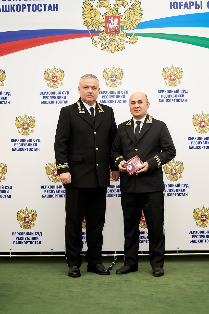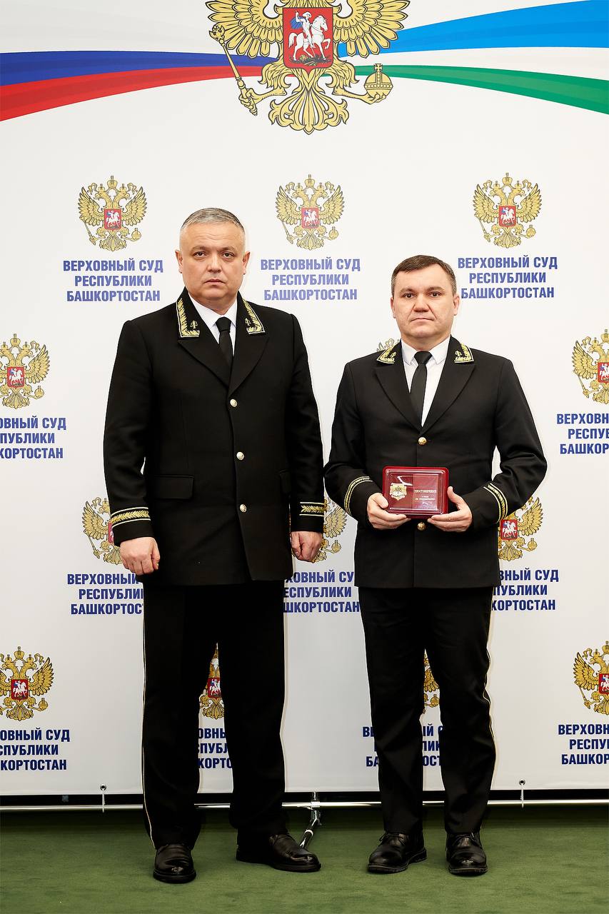 На итоговом совещании, состоявшемся 13 февраля в Верховном Суде Республики Башкортостан, на основании постановления Совета судей Курской области и в соответствии с приказом Председателя Курского областного суда, нагрудным знаком «За сотрудничество» награждены: председатель Кировского районного суда г. Уфы Тимур Сулейманов, председатель Демского районного суда г. Уфы Фадис Садыков, председатель Ленинского районного суда г. Уфы Ильмир Уразметов, председатель Кармаскалинского межрайонного суда Эдуард Уразбахтин, председатель Салаватского межрайонного суда Евгений Привалов и начальник отдела материально-технического обеспечения эксплуатации и ремонта здания Верховного Суда Аниф Гиниятов.